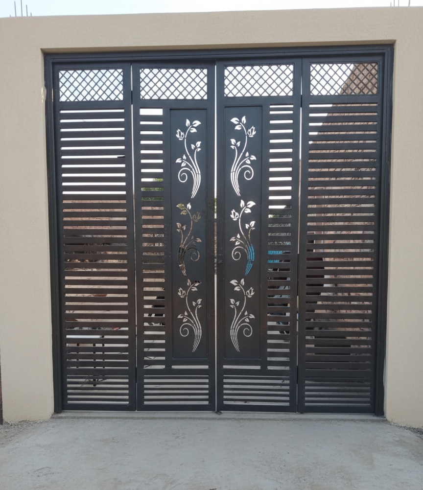 Strong and stylish steel gate crafted with precision laser cutting and durable powder coating. Designed to enhance security while adding a modern and elegant look to your home or commercial space.